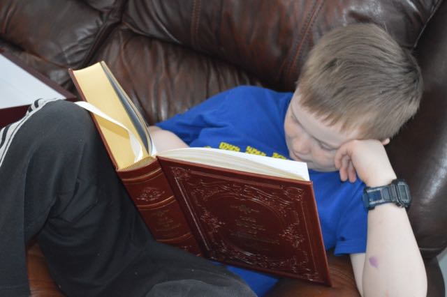 Yep! Dustin got our family an ultra deluxe Book of Mormon family edition. That coupled with his primary's encouragement has got him reading on his own! Love that boy.